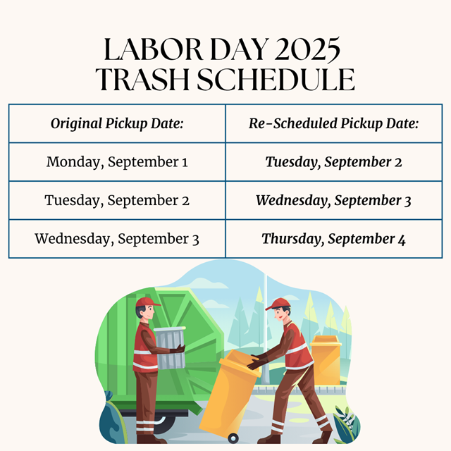 Posted August 28, 2025ππ₯πππ¬π ππ¨ππ: The changes in the trash pickup schedule due to the 2025 Labor Day holiday.